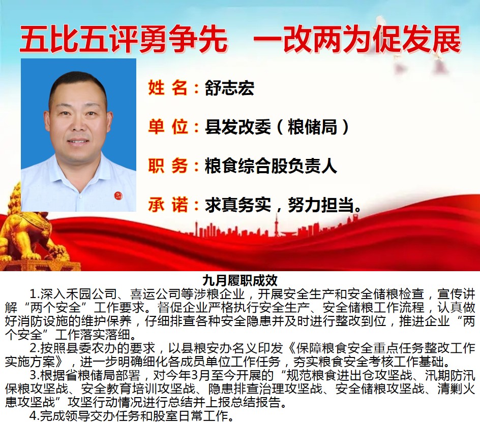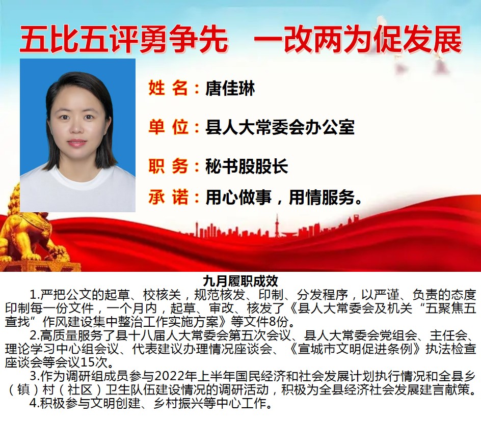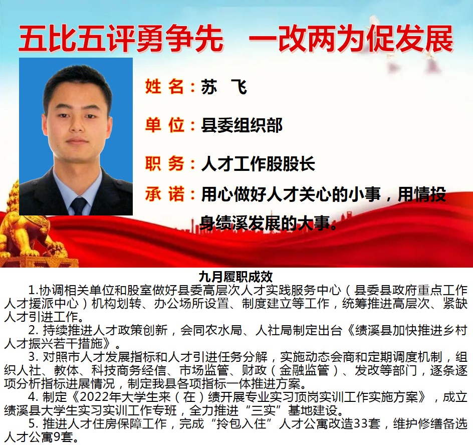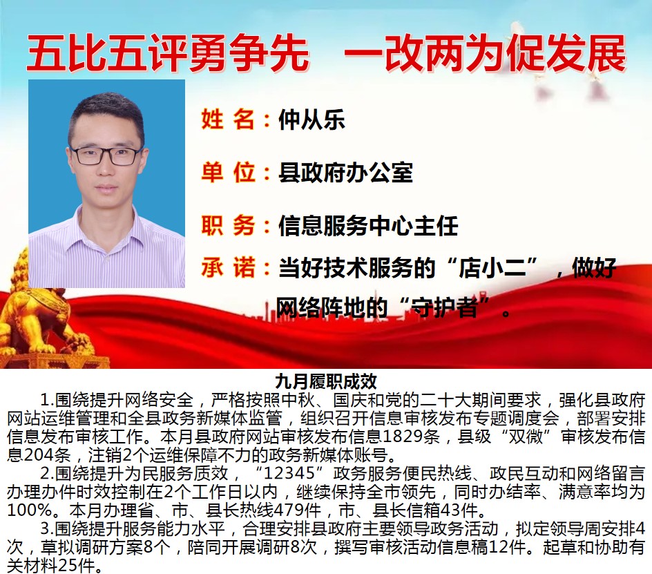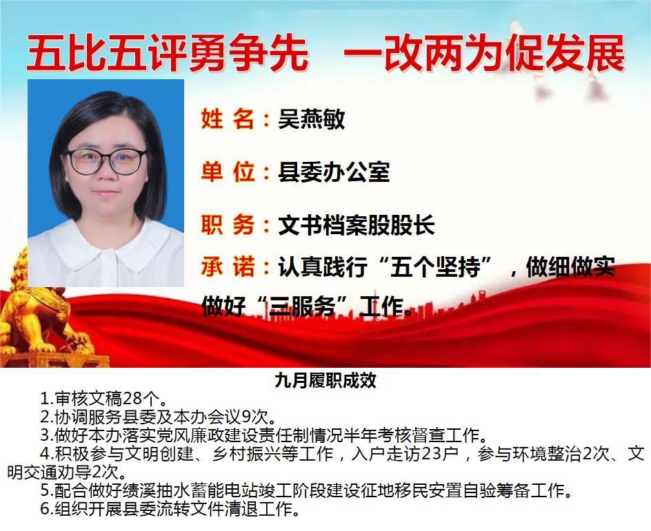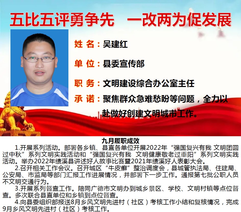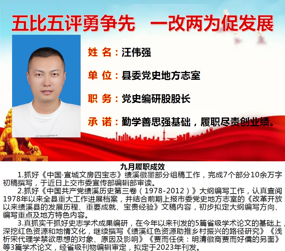 绩溪先锋本期将公示综合管理类15名参评对象9月份履职成效
