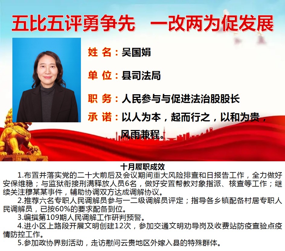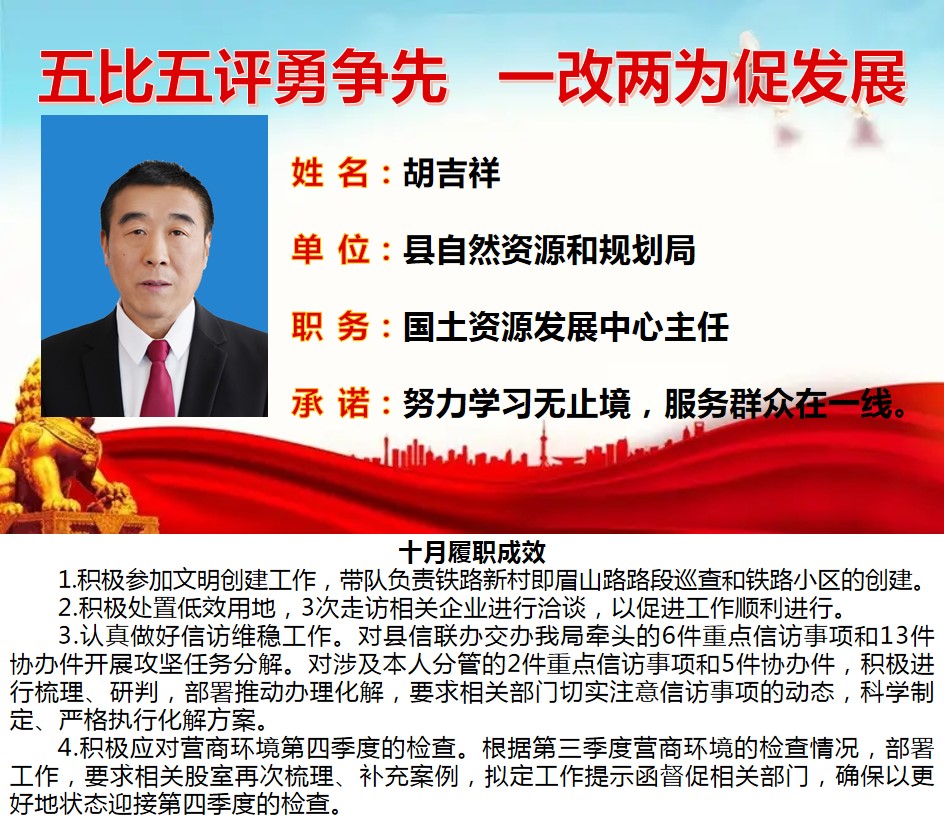 绩溪先锋本期将公示综合管理类18名参评对象10月份履职成效