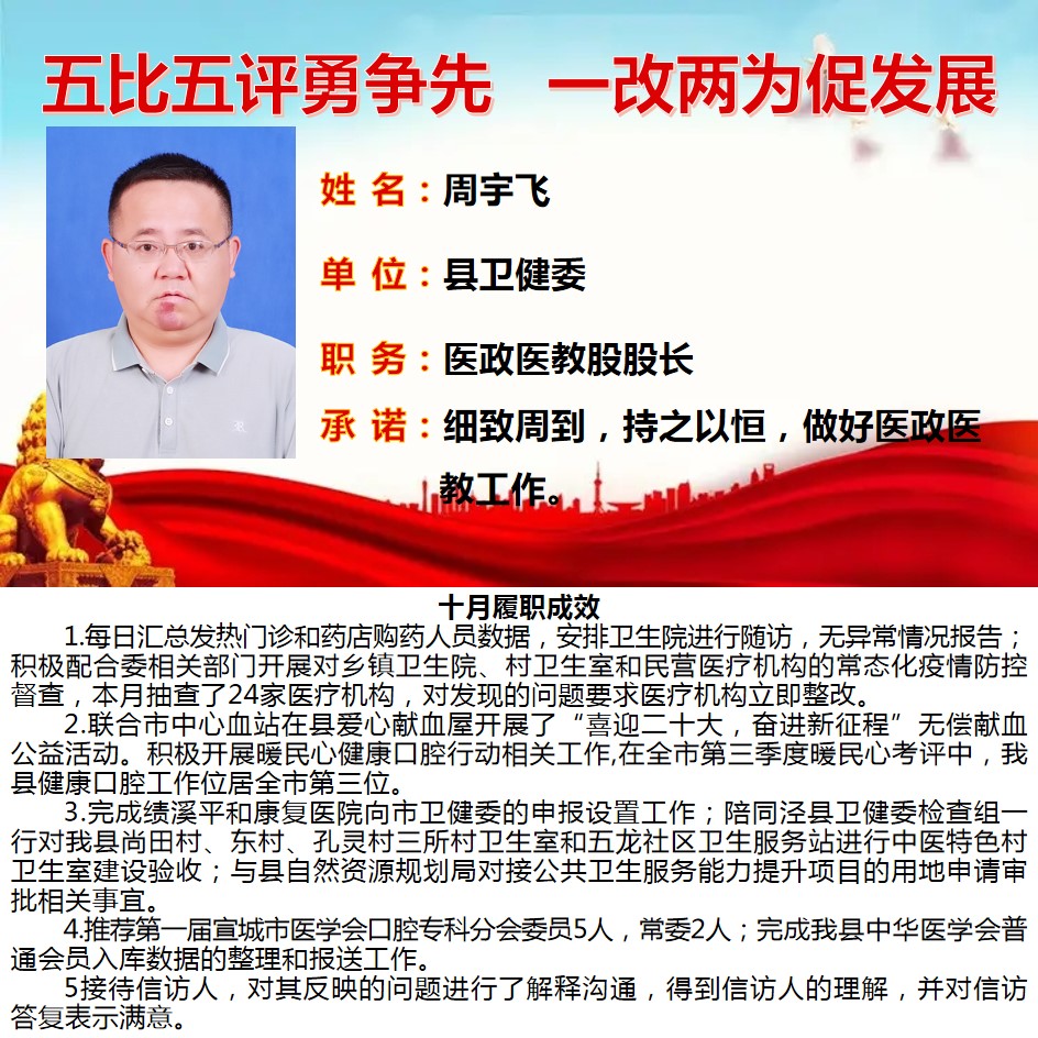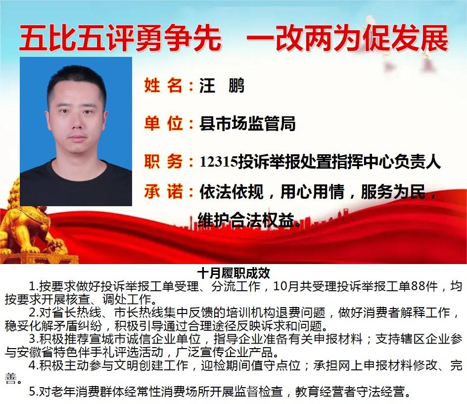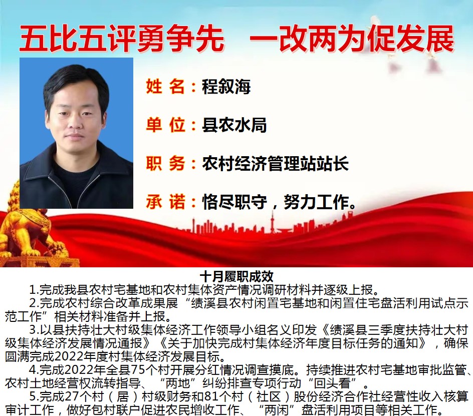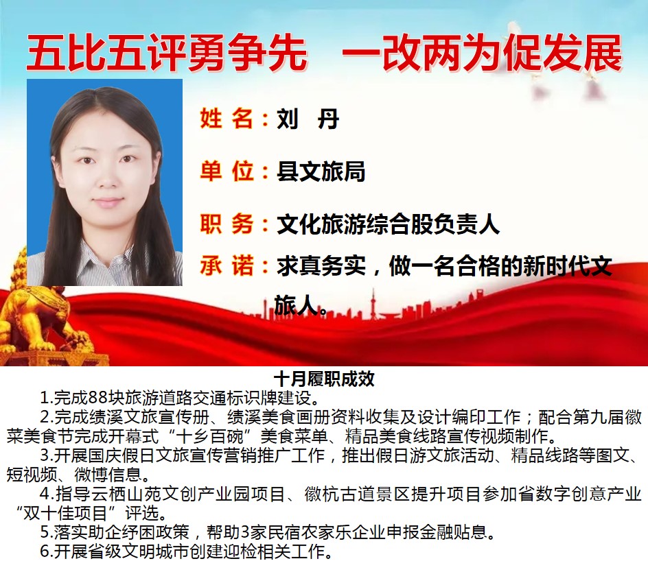 绩溪先锋本期将公示综合管理类17名参评对象10月份履职成效