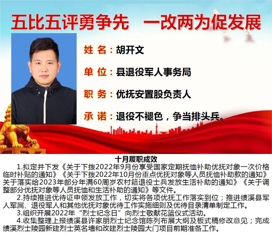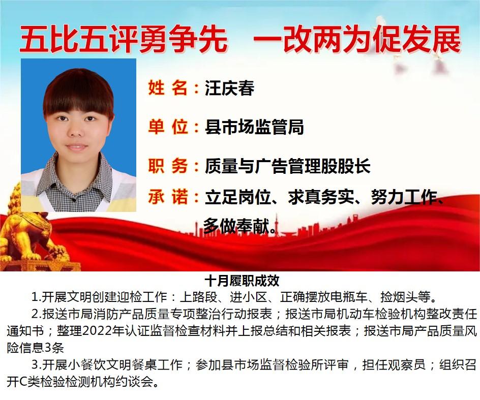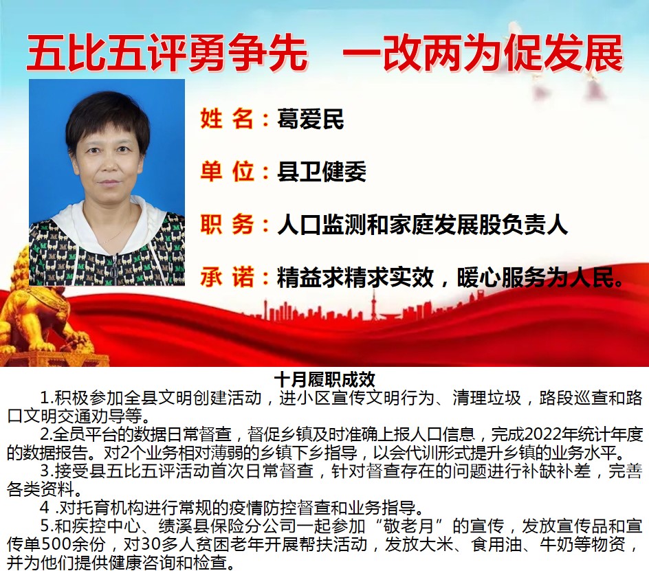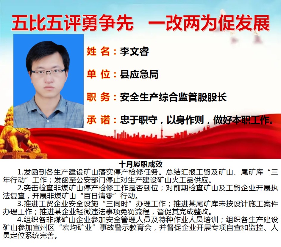 绩溪先锋本期将公示综合管理类17名参评对象10月份履职成效