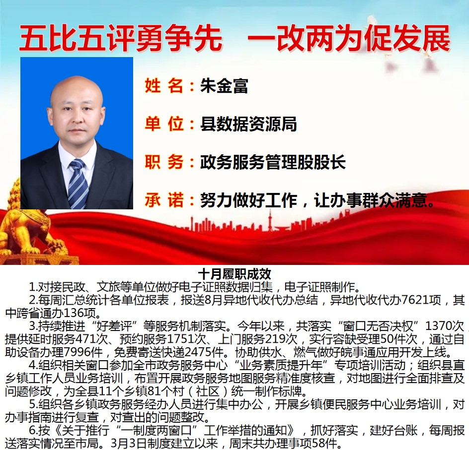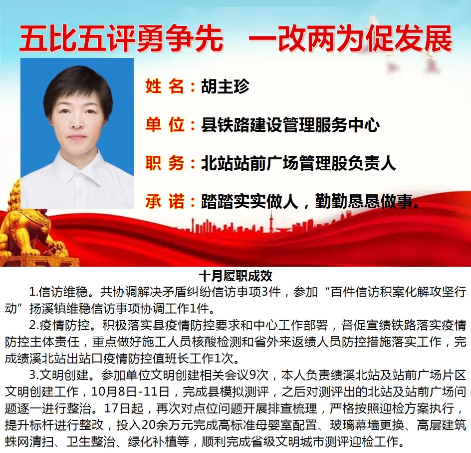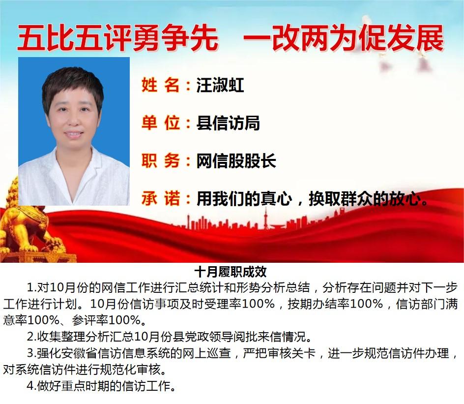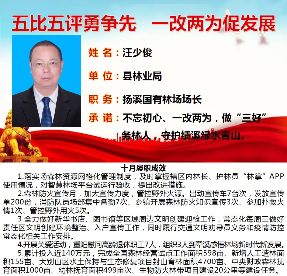 绩溪先锋本期将公示综合管理类16名参评对象10月份履职成效