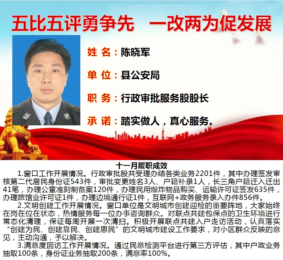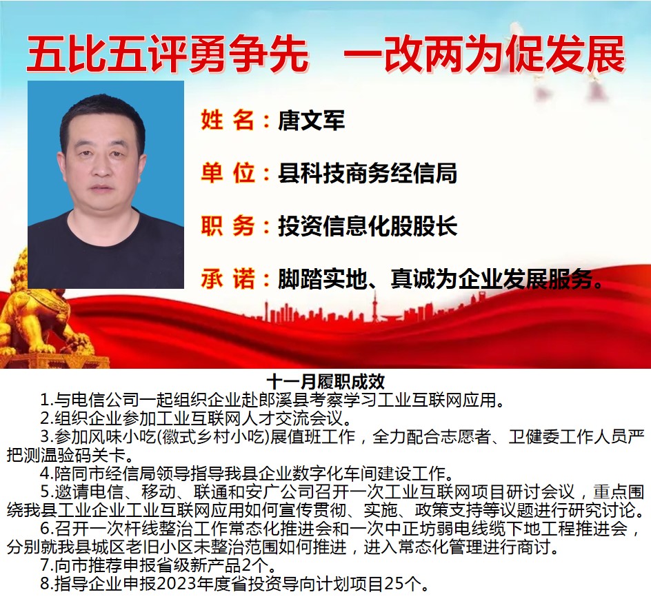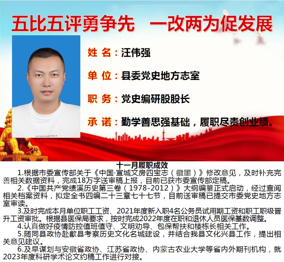 绩溪先锋本期将公示综合管理类15名参评对象11月份履职成效