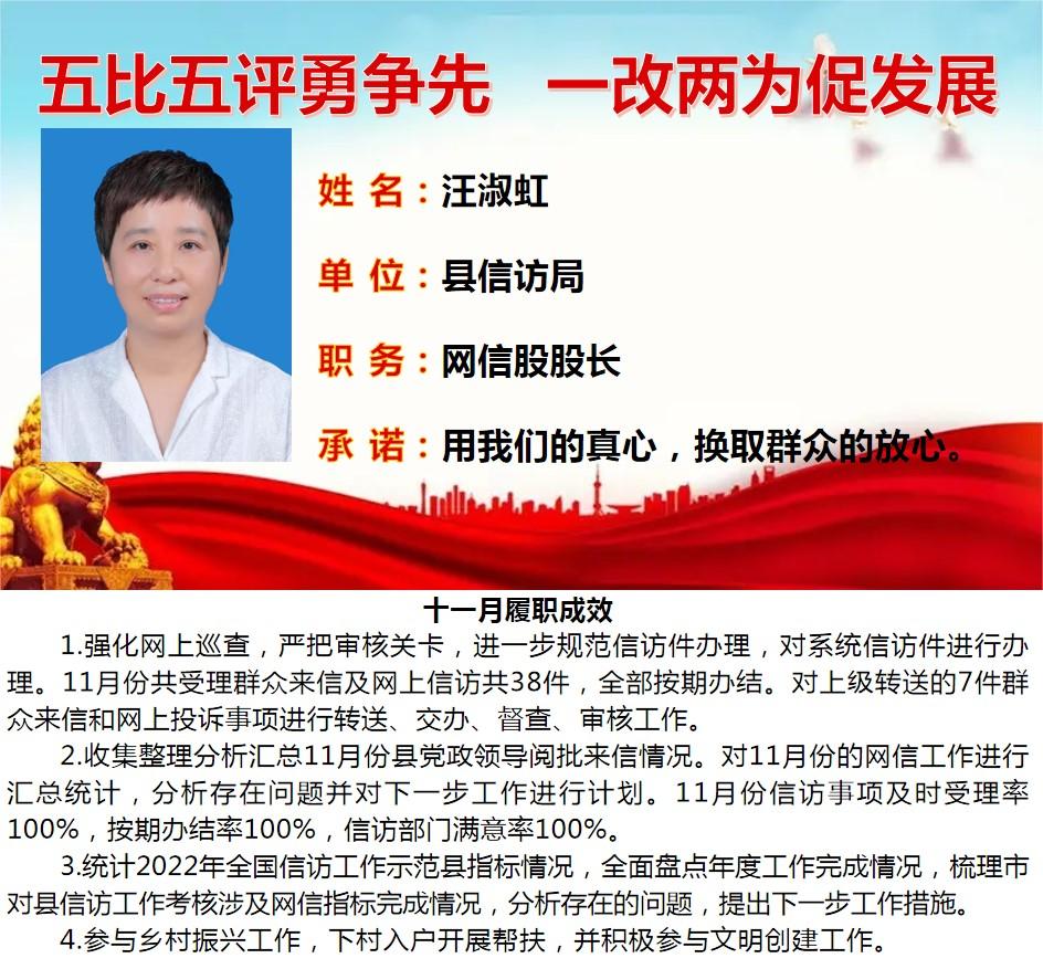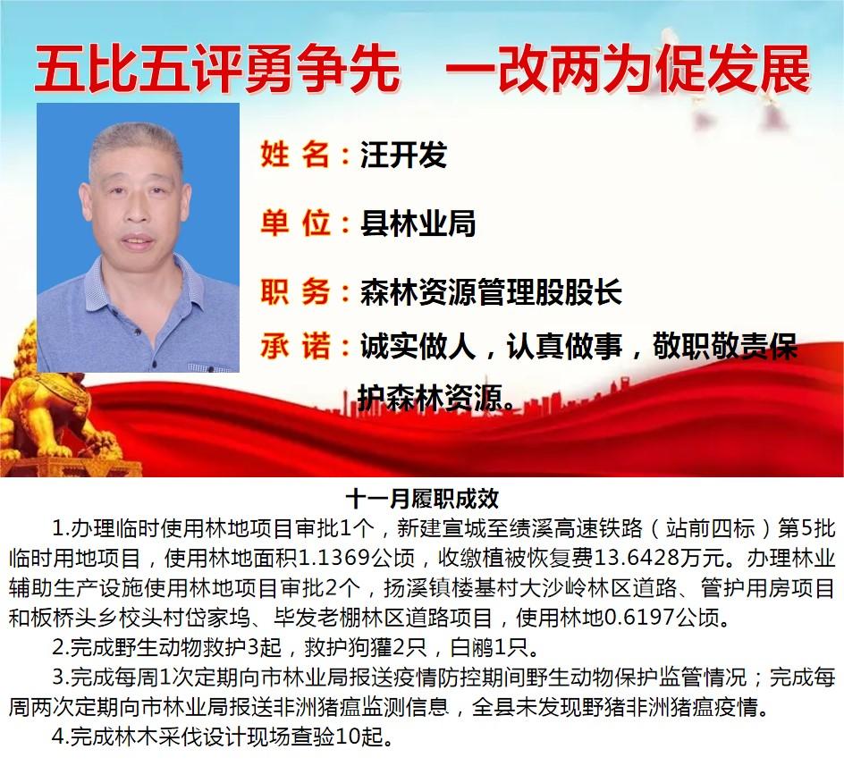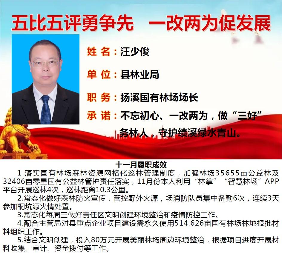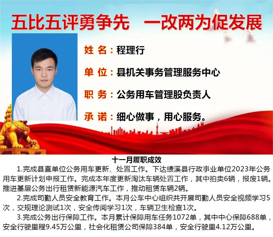 绩溪先锋本期将公示综合管理类16名参评对象11月份履职成效
