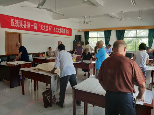 6月16日,运筹已久的绩溪县“天之蓝杯”离退休干部书法交流活动在老干部活动中心正式拉开帷幕,活动的主题是“以书陶冶情操、以笔感悟人生”。下午两点左右,20余名离退休老年书法爱好者们就带着自己心爱的墨笔和“我看脱贫攻坚新成就”等书法内容陆续来到现场,精心裁剪宣纸为即将落笔的作品做好充分准备。他们在书法“全面建成小康社会;抓党建促脱贫攻坚促乡村振兴、精准扶贫、合力脱贫攻坚、全面落实两不愁三保障及饮水安全;依法科学有序防控坚决遏制疫情扩散”等作品时皆是下笔稳中带劲,行云流水,收放自如,书法字体也各有千秋,有行书、楷书、隶书、魏碑楷体,还有别出心裁的空心书法,各具其美,各具特色。80多岁高龄的书法爱好者也下笔遒劲,运笔豪放,抒发出对美好生活的无限热爱。活动还评出了一、二、三等奖。