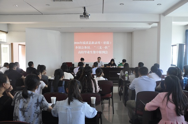 月12日上午,绩溪县人社局召开了2016年新录用(招募)乡镇公务员、“三支一扶”人员集中报到会暨欢迎会。组织部副部长、人社局局长汪宝华及县编办、各乡镇分管领导参加了会议。会上,汪宝华对32名新录用(招募)乡镇公务员和7名“三支一扶”人员表示祝贺,欢迎他们来绩溪工作。汪宝华介绍了我县以及今年考试录用公务员情况,从转变角色,适应新环境;虚心请教,学习新知识;爱岗敬业,做好新工作;严于律己,树立新形象四个方面对新录用(招募)人员提出了殷切希望。并要求各用人单位从政治上、工作上、生活上关心新录用(招募)公务员、“三支一扶”人员,做好传帮带工作。