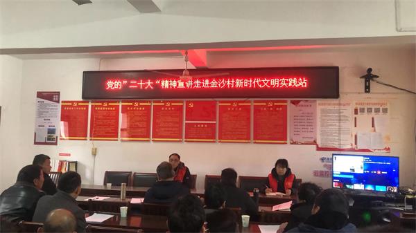 从镇机关到村委会,从田间到村民家里,从党员活动室、新时代文明实践所、站到小商店里,连日来,金沙镇处处涌动着学习宣传党的二十大精神的热潮。