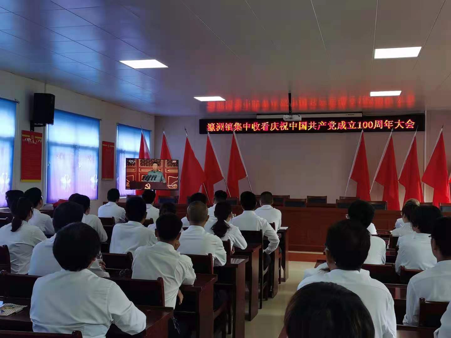 一百年,艰苦奋斗载精神,开展一次集中收看庆祝中国共产党成立100周年大会活动。七一党旗舞翩跹,五彩神州歌喧天。7月1日上午8时,瀛洲镇党委组织全体党员干部群众集中收看庆祝中国共产党成立100周年大会盛况。100年的烽火历程,100年的风风雨雨,100年的辉煌业绩,中国共产党历经百年艰辛,从南湖上的一片红船成长到今天的巍巍巨轮,这其中,离不开一代又一代共产党人的艰苦创业和无私奉献,没有共产党就没有新中国,没有共产党就没有今天盛世壮丽的社会主义新中国。