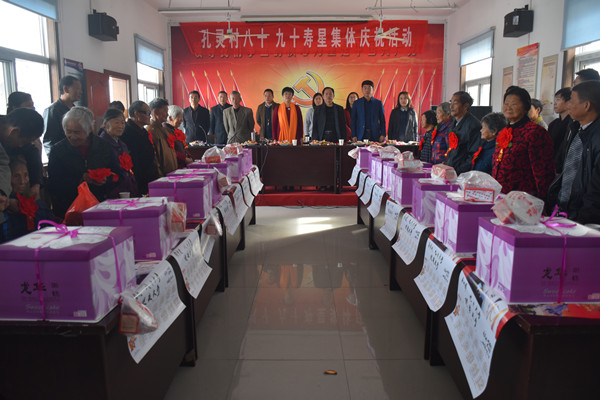本次祝寿活动迎来了16位八十、九十老寿星。庆祝仪式在村委会农民文化乐园思诚学堂举办,县、镇领导、联村干部、村两委、企业代表、寿星家属及村民代表参加仪式。活动第一项,全体起立奏国歌并宣布庆祝仪式正式开始;第二项由我村老协会会长介绍16位老寿星的基本情况;第三项由企业代表为老寿星发放糖果、祝寿蛋糕和祝寿红包;第四项,县妇联主席发表讲话,肯定我村的特色活动开展工作,祝老寿星万事如意、健康长寿;最后党总支书记总结讲话并发表祝词,祝愿老人们晚年生活幸福安康。