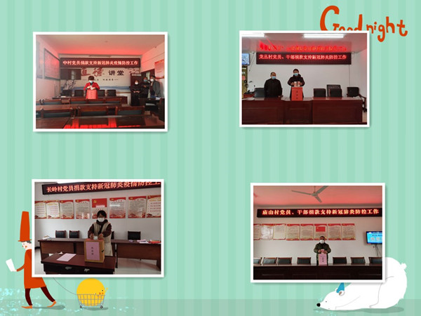 自疫情防控以来,板桥头乡党员干部始终以冲锋者的姿态,充分发挥党组织战斗堡垒作用和党员先锋模范作用,为人民群众生命安全和身体健康保驾护航。2月28日,板桥头乡积极响应党中央对广大党员的号召,各党(总)支部组织党员自愿捐款支持疫情防控工作。用实际行动兑现自己的初心,践行自己的使命,切实增强“四个意识”、坚定“四个自信”、做到“两个维护”。