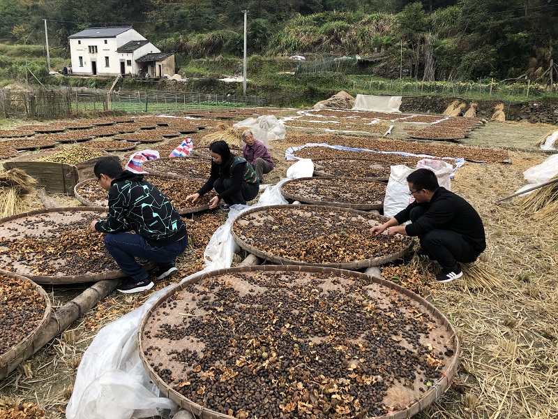 家住大源村潘村组的脱贫户周奶奶,今年74岁高龄的她种植了5亩油茶。霜降前后,油茶果仁充分成熟,此时油茶果的油脂含量达最高值,油质是最好的。周奶奶想趁着晴好天气加快采收、晾晒,确保油茶籽颗粒归仓。奈何周奶奶儿子远在北京务工,自己也不舍得花钱请工人,坚持一个人在家收油茶,年老力弱的她面对几千斤的油茶焦急万分。大源村乡村振兴工作队了解情况后,一有时间就往周奶奶家跑,帮周奶奶抢收油茶。采摘装袋、肩挑背扛、翻晒剥籽……队员们不怕苦、不怕累,一丝不苟地干好每一道工序。当看到所有油茶均已采下山,大部分都完成了晾晒,周奶奶开心地说道:“幸好有工作队帮忙,不然我一个人不知道要干到什么时候。”
