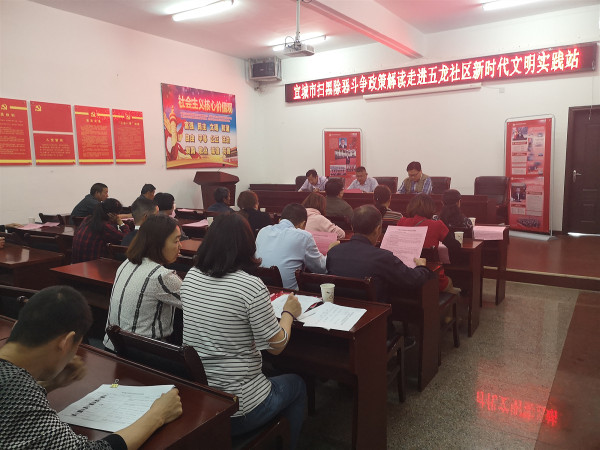 为落实习近平总书记关于开展扫黑除恶重要指示,4月23日,五龙社区党委组织社区班子成员、党员以及部分居民,在社区新时代文明实践站开展扫黑除恶专项斗争政策宣讲。