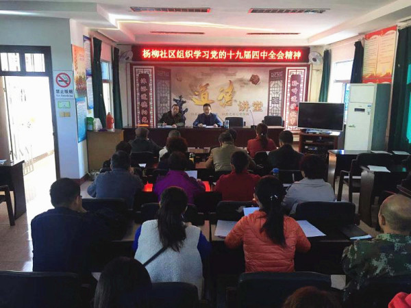 近日,杨柳社区组织召开党委扩大会,学习贯彻《中国共产党第十九届中央委员会第四次全体会议精神》,会议由社区党委书记高永东主持。