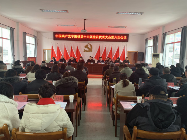 元月14日,中共华阳镇第十六届党员代表大会第六次会议在镇新时代文明实践所党员活动室隆重召开。县委副书记陈自水出席大会并讲话,县委组织部常务副部长孙幼忠等到会指导。来自全镇各条战线的88名党代表参加会议。