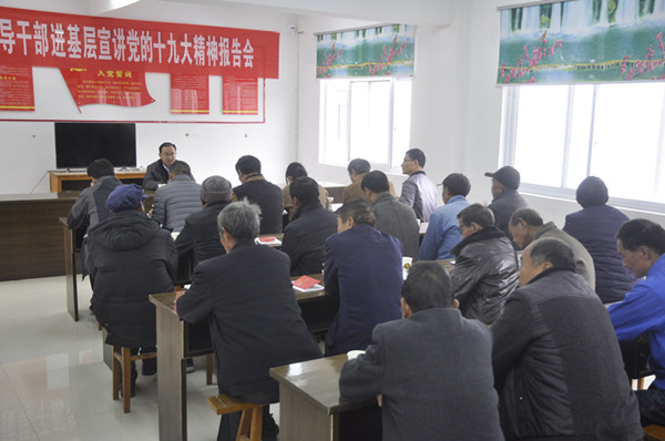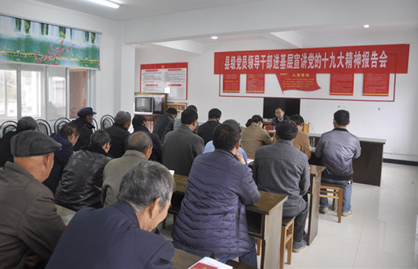 11月25日下午,县委常委、组织部长梁保清深入党建联系点扬溪镇东村,宣讲党的十九大精神。