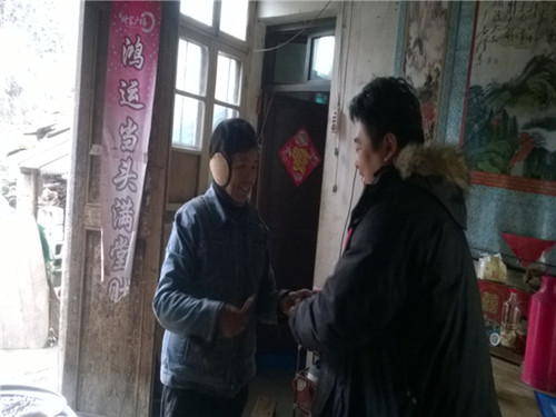 带着浓浓的关切之情,庞波副局长慰问了自己结对帮扶户高杏时户,一进屋就嘘寒问暖,详细询问她的生产及生活状况,并为其送去了慰问金,还叮嘱村干部要做好近期雪灾预防工作,切实安置好空巢老人、分散供养五保户、扶贫帮扶户,保障他们的人身财产完全。