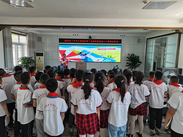 唐爱农带领50名学生在气象科技工程师的介绍和演示下,参观了实时显示气象数据的电子显示屏、风向杆、白色百叶箱、能见度仪、降水量测量仪等设备。随后,孩子们观看了气象灾害预防等科普视频。