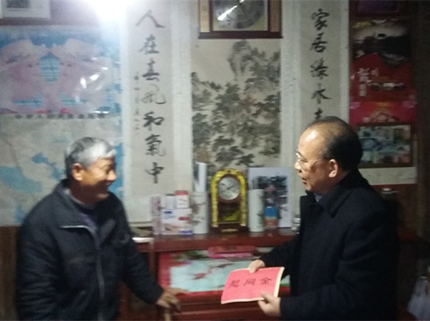 2017年1月17日下午,县委副书记、县长黄德泉来到临溪镇临溪村,走访慰问残疾群众邵成辉,送去慰问金,并送上节日的祝福。县政府办主任章基稳、临溪镇镇长汪全胜陪同。