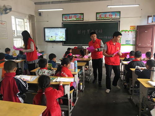扬溪中小学通过国旗下讲话、校园广播、主题班会、课堂渗透、宣传栏、黑板报等形式对学生进行环保知识的宣传教育,志愿者们到各个班级发放环保知识资料以及秸秆禁烧倡议宣传单,并为学生上一堂环保课等,让学生了解环境保护与我们生活密切相关,引导学生树立环保意识。