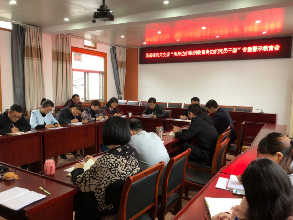 4月4日上午,扬溪镇机关支部召开“用身边的案例教育身边的党员干部”专题警示教育会,机关支部全体党员、入党积极分子参加会议。