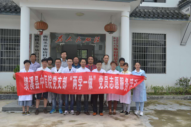 为了更好的践行“两学一做”学习教育,6月27日,绩溪县中医院组织部分党员来到板桥头乡庙山村开展“献爱心、送健康”党员志愿服务活动。