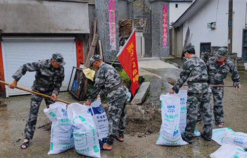 7月25日下午蜀水村民兵应急突击队,备足铁锹、编织袋、砂石等必要的防汛物资来到蜀水村大溪组,民兵突击队立马行动,将沙袋装满砂石,对沿河有可能进水的农户进行应急处理,同时对周边农户做好相关防汛抗台宣传工作,切实提高村民的自我保护意识,确保防汛抗台工作万无一失。
