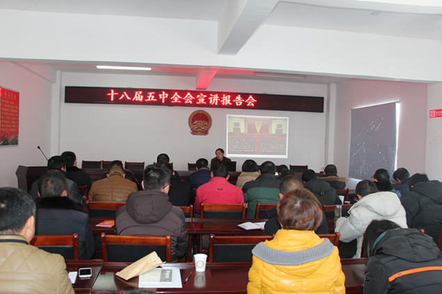 1月26日,上庄镇开展党的十八届五中全会精神宣讲报告会,邀请县委宣传部副部长章锡辉主讲,镇全体干部、村两委主要负责人参加报告会。报告会由镇党委书记胡广义主持。