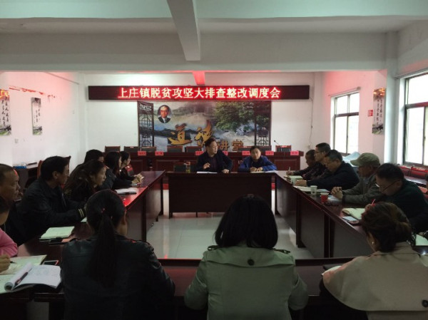 10月16日,上庄镇召开脱贫攻坚大排查整改调度会。上庄镇党委书记胡荣中同志、副镇长秦超同志、各村党组织书记、第一书记、驻村扶贫工作队、镇村两级扶贫专干参加了会议。