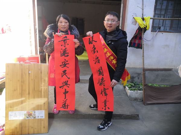 邀请本地书法爱好者,在村会议室、广场等群众聚集地,挥毫泼墨,为村民免费写春联。上庄镇法治宣传志愿者主动向在场群众发放《宪法》《民法典》等法律宣传单,共发放300余份,现场解答法律问题40余个。活动现场气氛活跃,人们喜气洋洋,纷纷表示结合春节开展法治活动非常吸引人,收到春联又学了法律知识,真是一举两得,希望今后多开展此类活动。(洪昊)